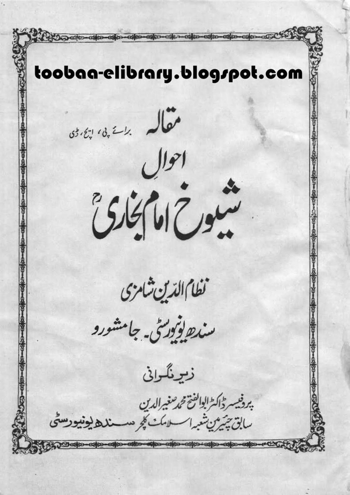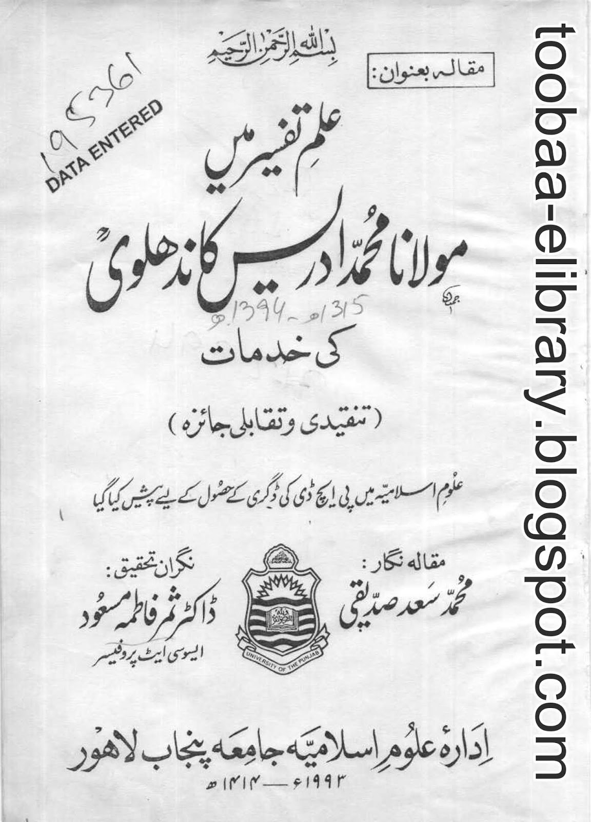 پی ایچ ڈی مقالہ : ڈاکٹر محمد سعد صدیقی